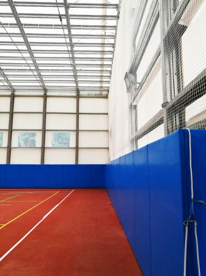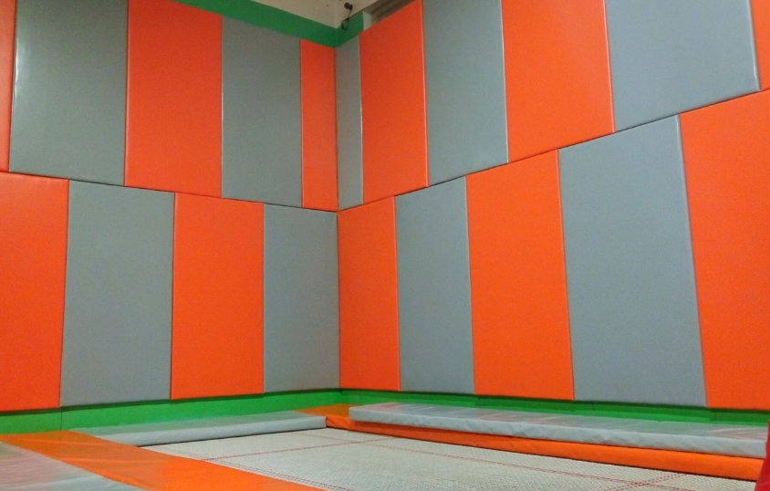 - Несшитый газонаполненный пенополиэтилен (НПЭ) плотностью 22 кг/м³ выступает в качестве наполнителя и существенно смягчает удары о стены во время спортивных тренировок и игр.