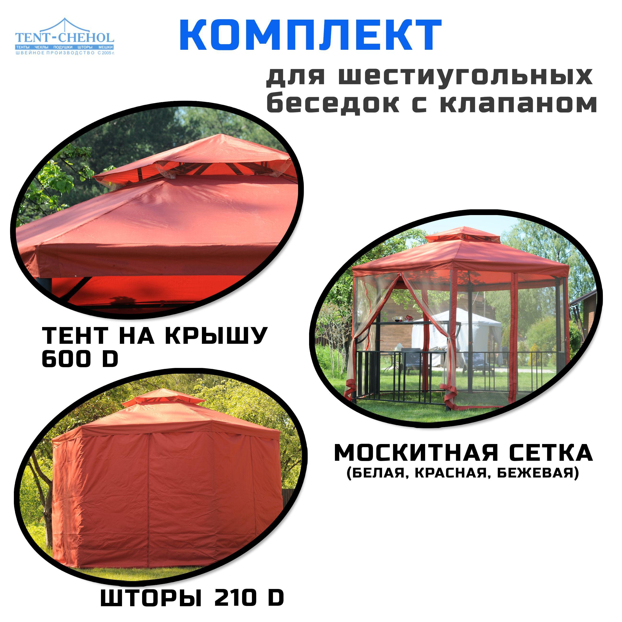 Краткое описание «Комплект для беседки с клапаном: тент-крыша+ плотные шторы+ антимоскитные сетки»